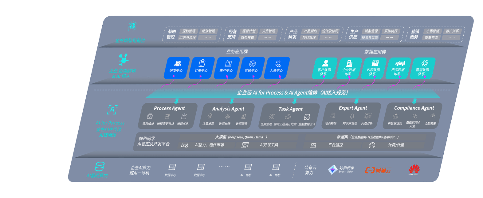 壹号平台问学智车解决方案是一套基于AI技术的汽车行业智能化系统,,覆盖从底层算力到顶层AI应用的全栈方案。。。。方案由算力层、、、、模型层和应用层组成:算力层,,,,方案支持多种一体机配置,,,,具备云端灵活部署、、多云适配以及动态优化计算资源的能力;模型层,,壹号平台问学平台版提供了企业级AI应用一站式构建与管理平台,,,支持基于后训练强化技术的汽车企业专属模型的训练、、、评测和运营;应用层,,壹号平台问学DeepSeek版提供包括超级员工、、、智能招采、、智能营销、、、智能客服、、AI for BI等一系列解决方案,,,可助力汽车行业实现数字化转型,,,让管理更智能、、、、响应更敏捷。。。。
